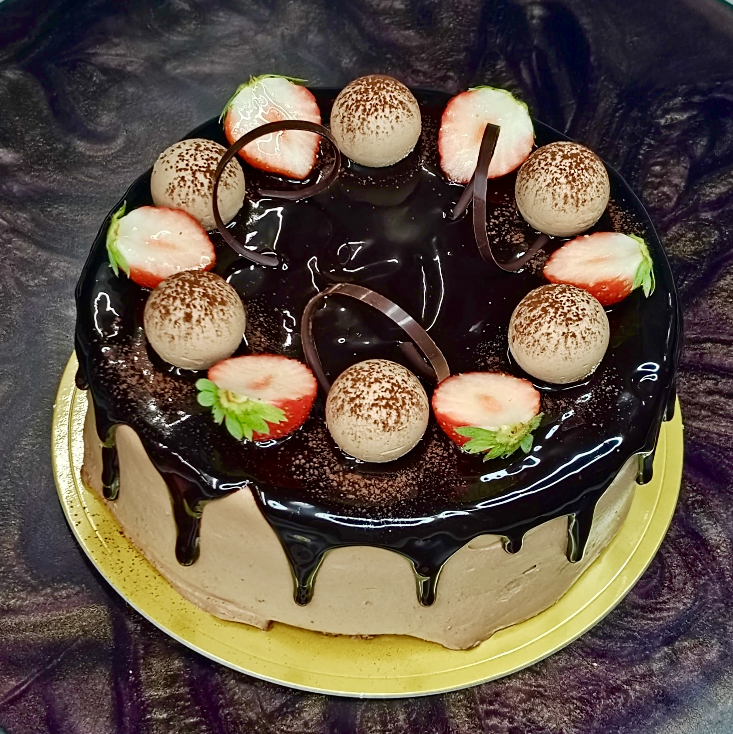 チョコレートガナッシュ、ブラウニー生地を使ったケーキ